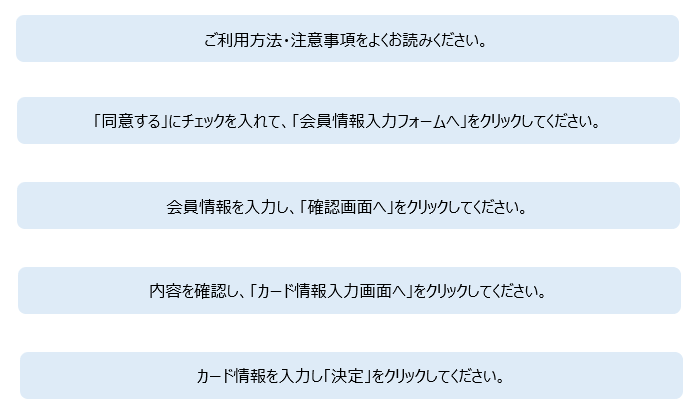 すべてご了承いただいたうえで、本ページ最下段の「カード情報入力フォームへ」ボタンをクリックして次の申し込み画面にお進みください。
